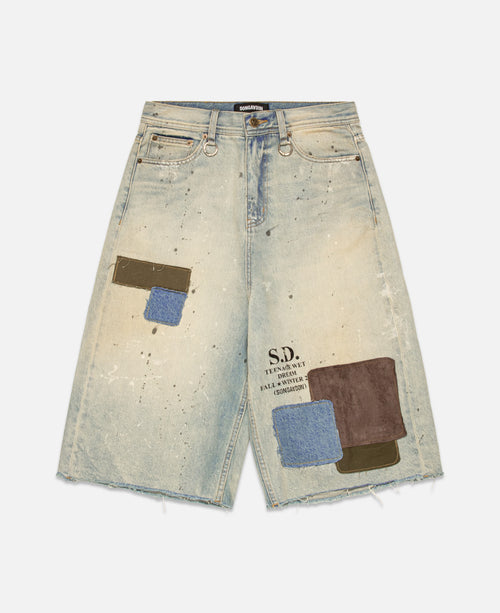 Patchwork Denim Shorts (Blue)